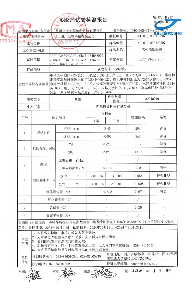 四川恒睿科技有限公司成立于2017年11月13日,注冊資金1180萬元,是一家專業(yè) 生產銷售特種加固水泥基、聚合物砂漿材料、混凝土外加劑的高科技實體企業(yè)。其位置座落在美麗的蓉城青羊區(qū),地理位十分優(yōu)越、交通便利。